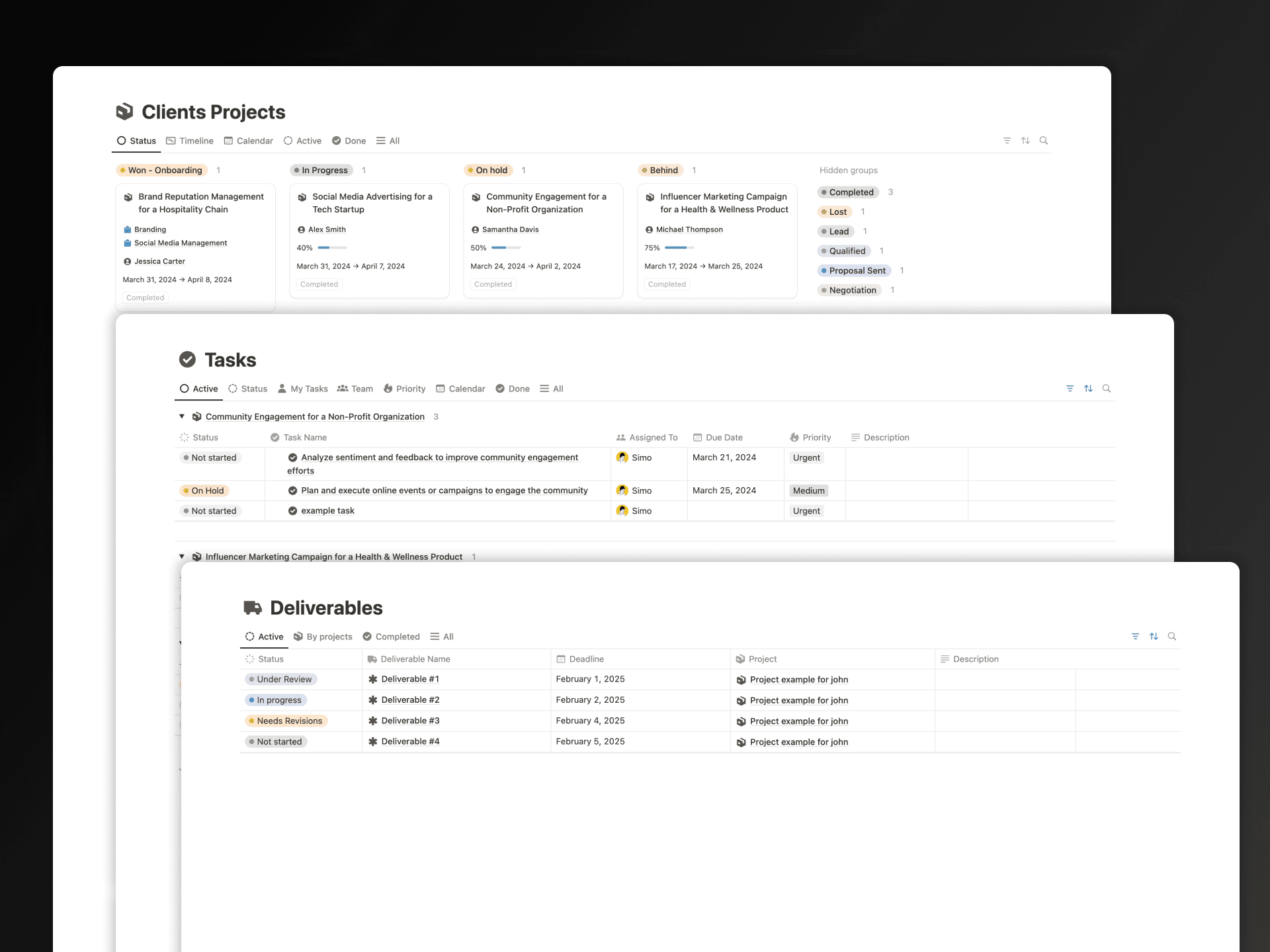 Agency OS is a Notion template that helps agencies manage operations, clients, and projects in one streamlined workspace.