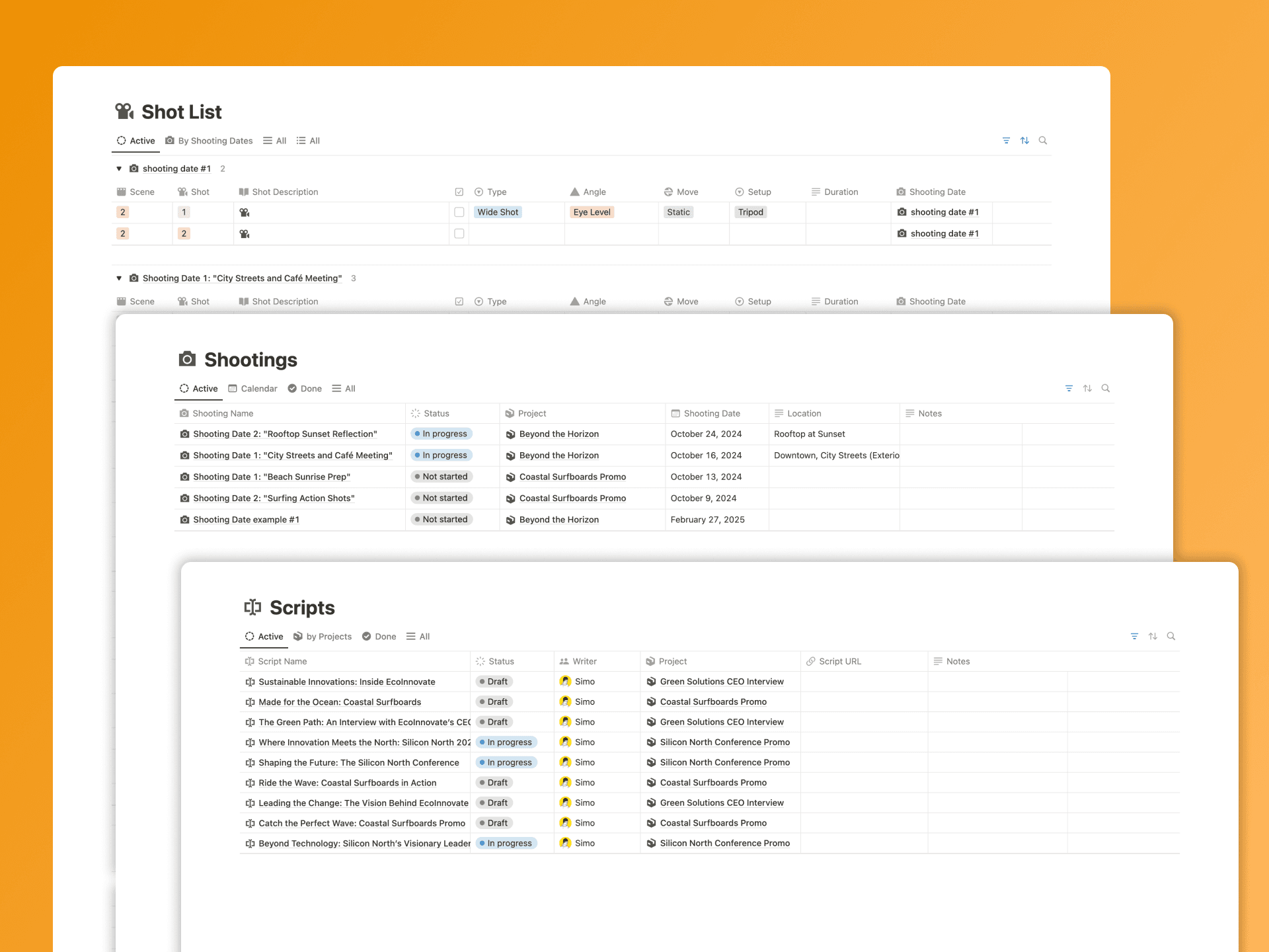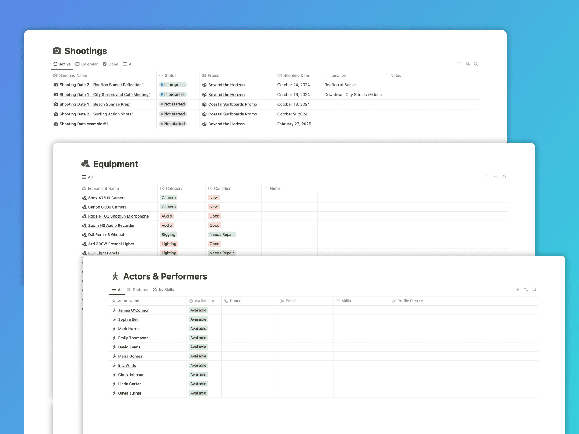 Track shoots, manage equipment, and ensure a smooth filming process.
